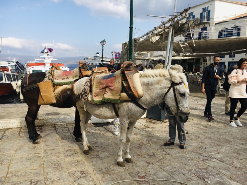 島の中では自転車やバイクの乗り入れが禁止されているのでロバに荷物を載せて運んでいます。